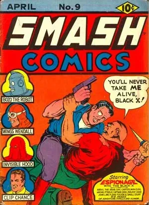 Black X, first appearing in Feature Funnies #13 in 1938. A spy and federal bureaucrat who faked his own death and created his alter-ego to fight crooks and Axis spies abroad. Created by comics icon Will Eisner.